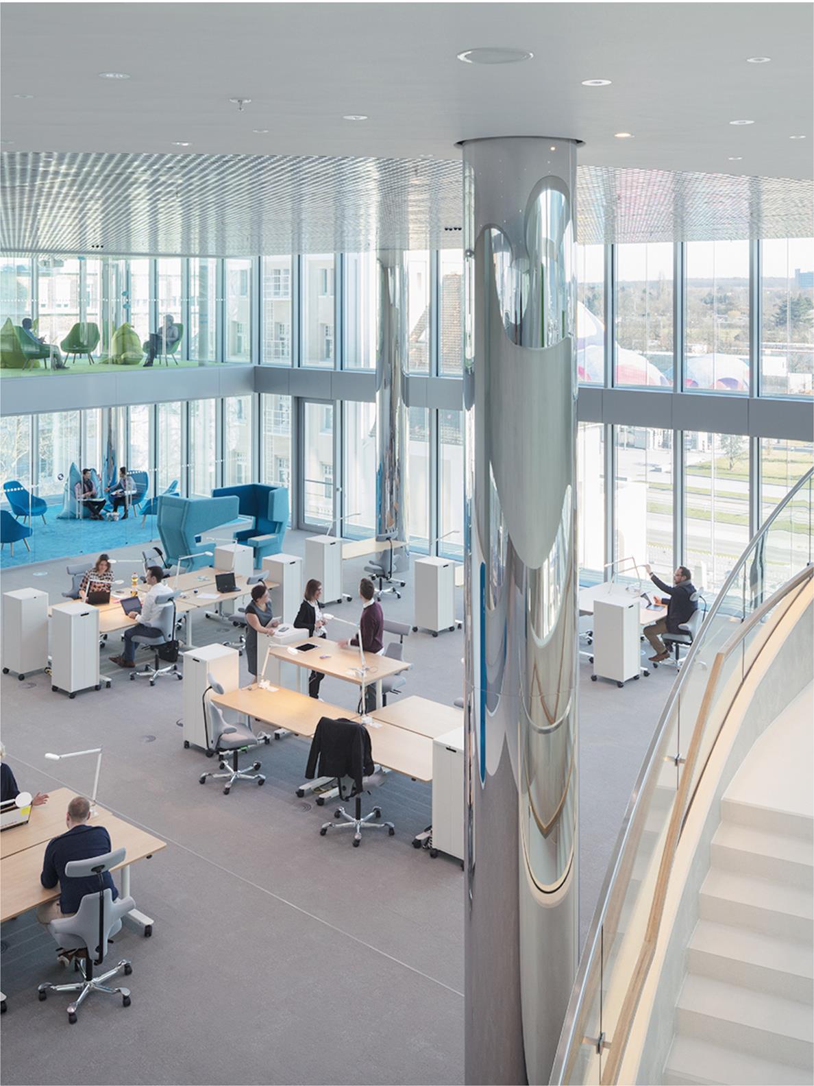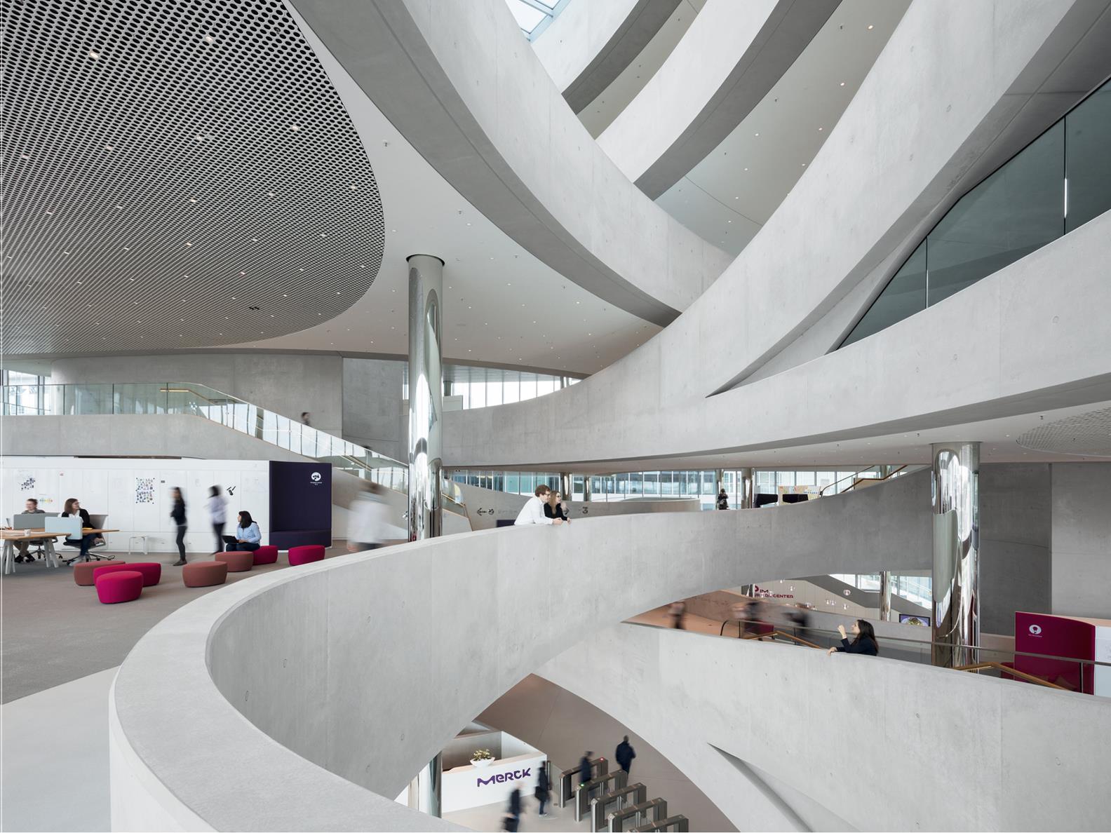 La nuova sede centrale del gruppo chimico e farmaceutico Merck accoglie dipendenti provenienti dalle diverse società in tutto il mondo. Allo stesso tempo, è un esempio eccellente di architettura per uffici con una progettazione sperimentale che supporta i processi creativi e promuove nuove attività.